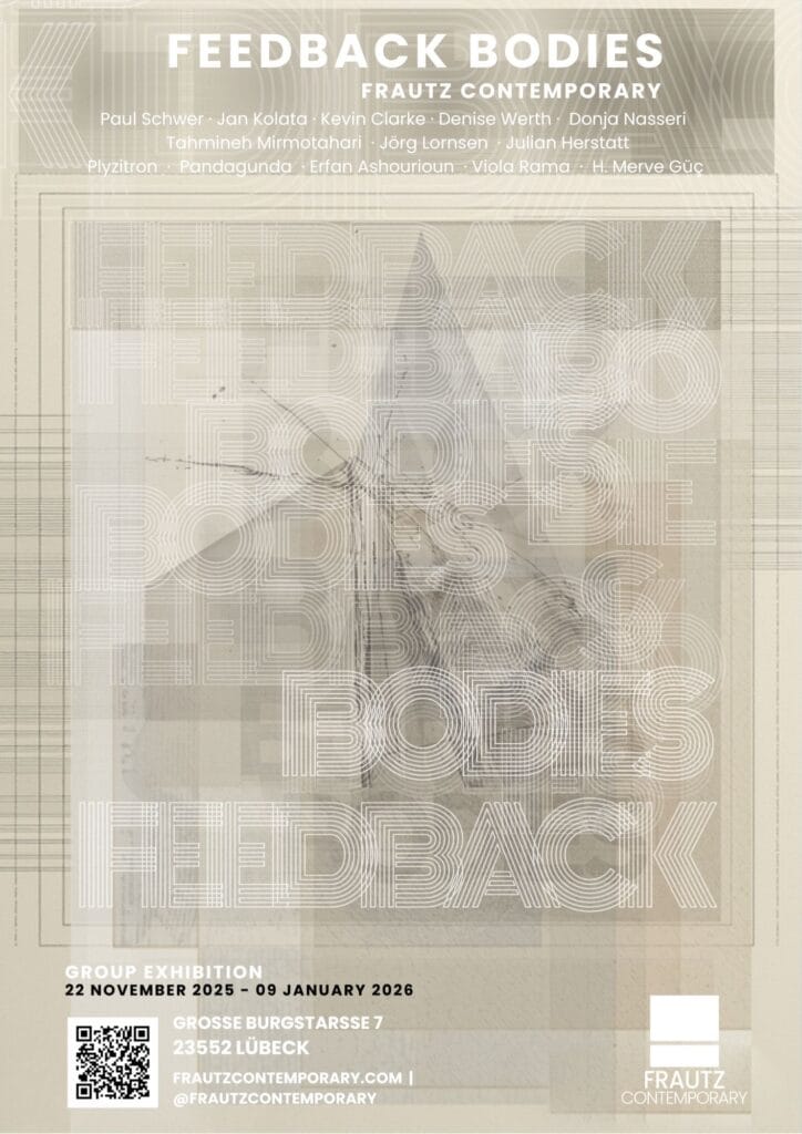 The artists of Feedback Bodies form a constellation of practices that explore the evolving relationship between body, material, and system. Their works unfold across multiple media, where perception is understood as an active, mediated process rather than a fixed condition. Participating Artists: Paul Schwer, Jan Kolata, Kevin Clarke, Denise Werth, Donja Nasseri, Sabrina Podemski, Tahmineh Mirmotahari, Jörg Lornsen, Julian Herstatt Plyzitron, Erfan Ashourioun, H. Merve Güç, Viola Rama, Pandagunda.
