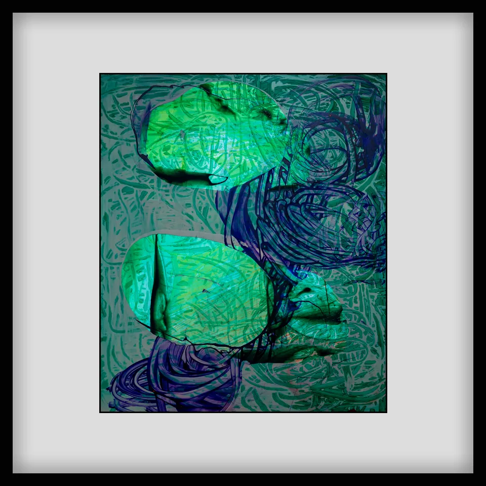 Rama’s compositions frequently inhabit a state of in-betweenness: flesh becomes data, gesture becomes code. This liminal field reveals the instability of corporeal identity in a visual culture governed by algorithms, networks, and hyperreal imagery. The female form, historically coded through ideals of beauty and control, is here reimagined as a field of negotiation — an assemblage of fragments, interfaces, and desires.