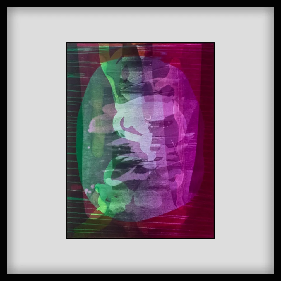 Distortion functions here as a conceptual and formal method. By fragmenting the body and reassembling it through digital architecture, Pandagunda transforms the figure into a mutable system rather than a representation. The body becomes a field of translation - a site where information and sensation converge.