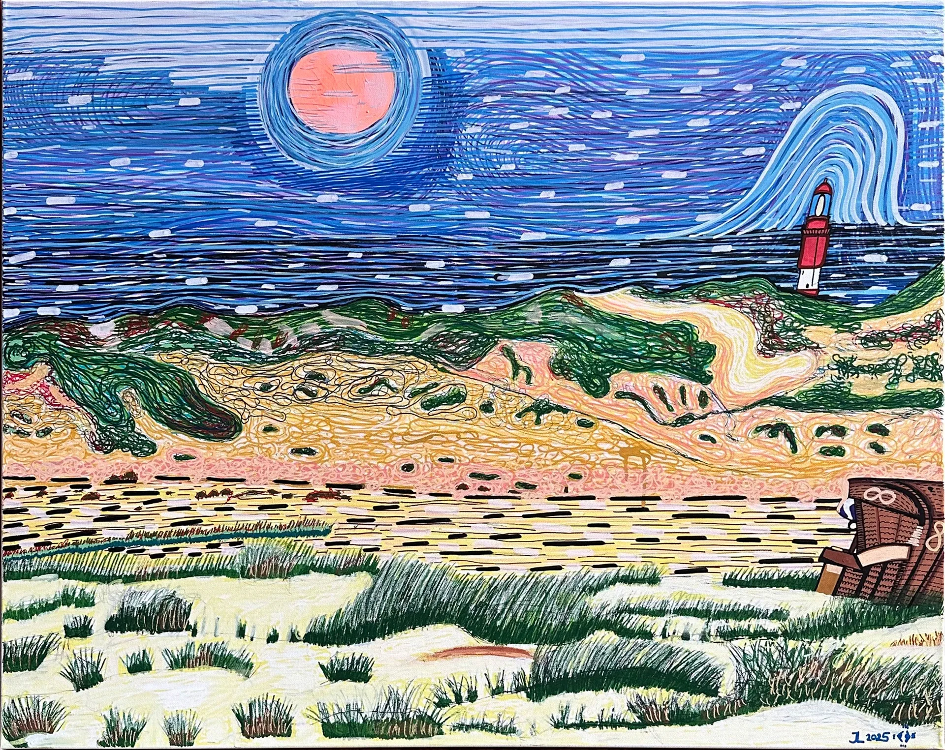 Sea Breeze (2025) • 60 × 80 cm • Acrylic marker and acrylic paint on canvas
